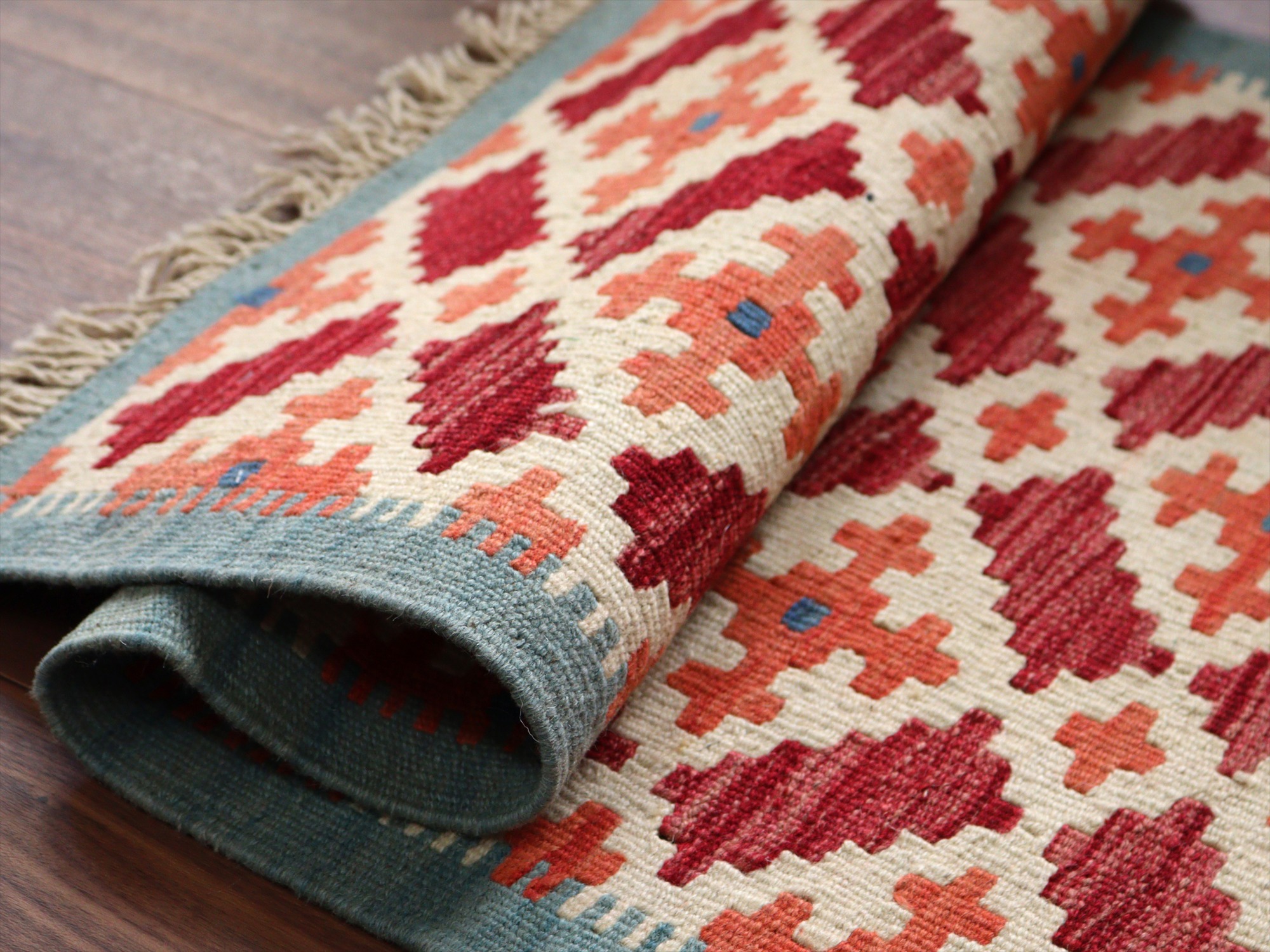 - カシュカイキリム イラン 手織り89×61cm カラフルな幾何学モチーフ