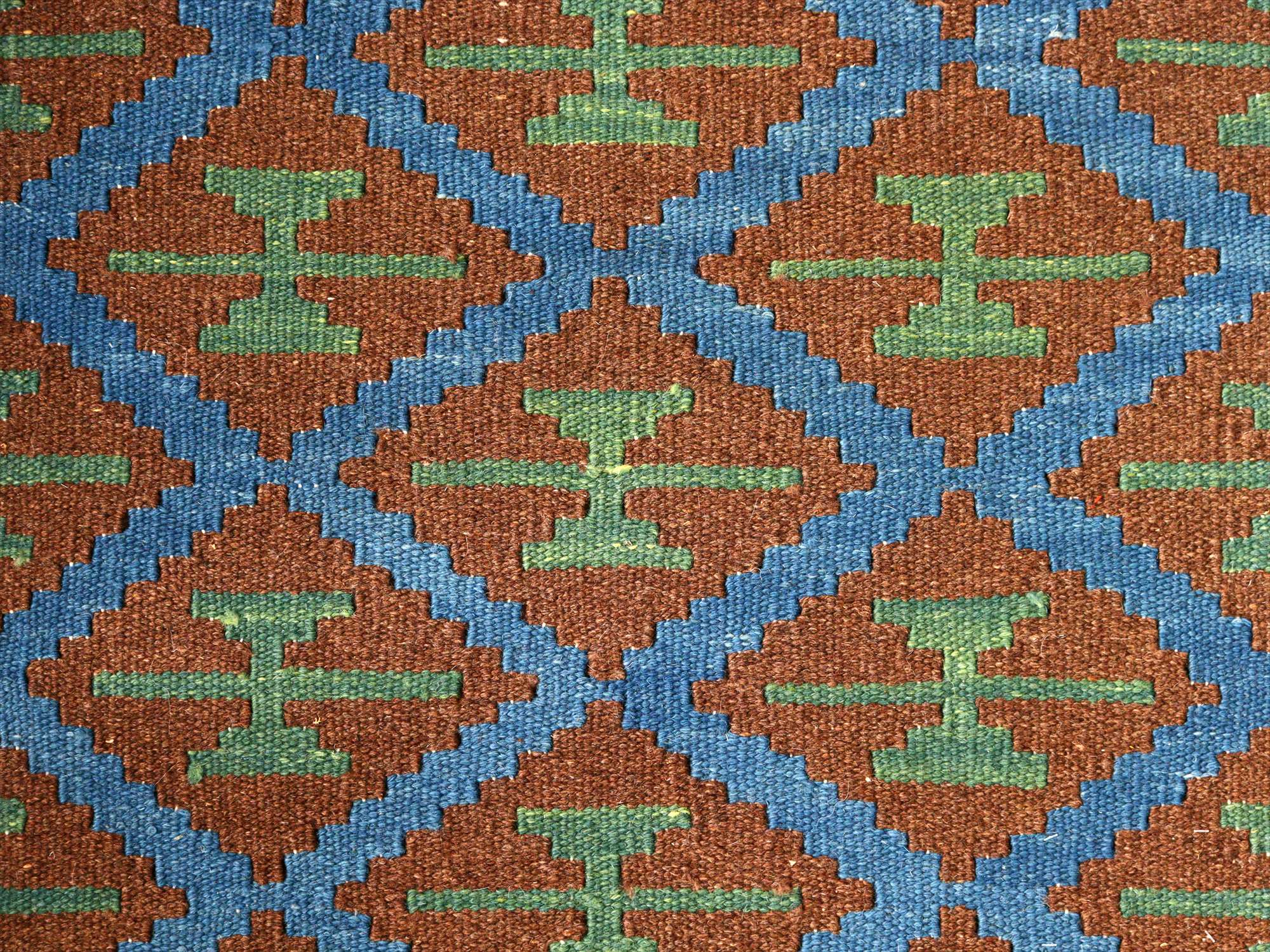 | カラフルで華やかな色使いのカシュカイ族のキリム。イラン南西部、ザクロス山脈の麓で、現在も遊牧生活を続けるカシュカイ族は、トルコ語に近い言葉を話す部族で、キリムの織りの文化も比較的トルコに近いテイストで、ユニークな幾何学模様がたくさん登場します。 |