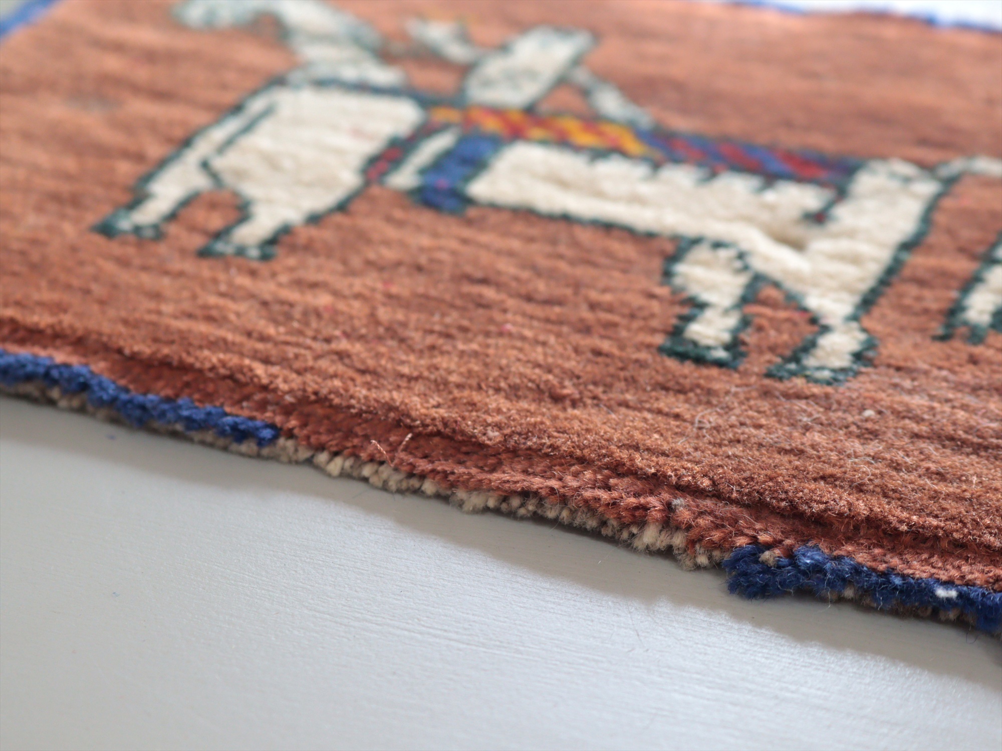- ギャッベ カシュカイ族の手織りラグ 21x27cm 白馬にのる人/ブラウン・ミニカーペット 【OUTLET】