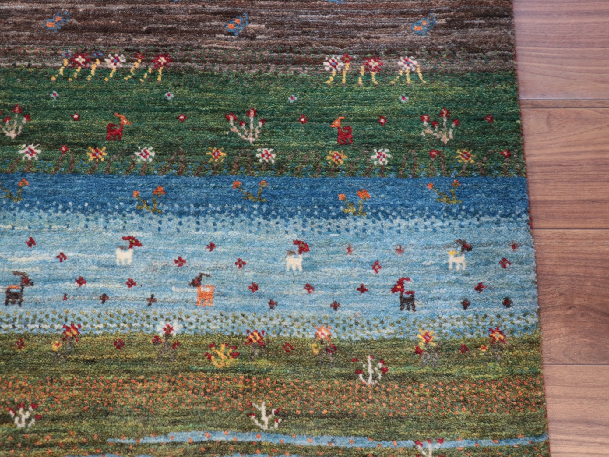 - ギャッベ バナフシェ イラン産手織りラグ 101x67cm 広がる草原 風景のギャッベ
