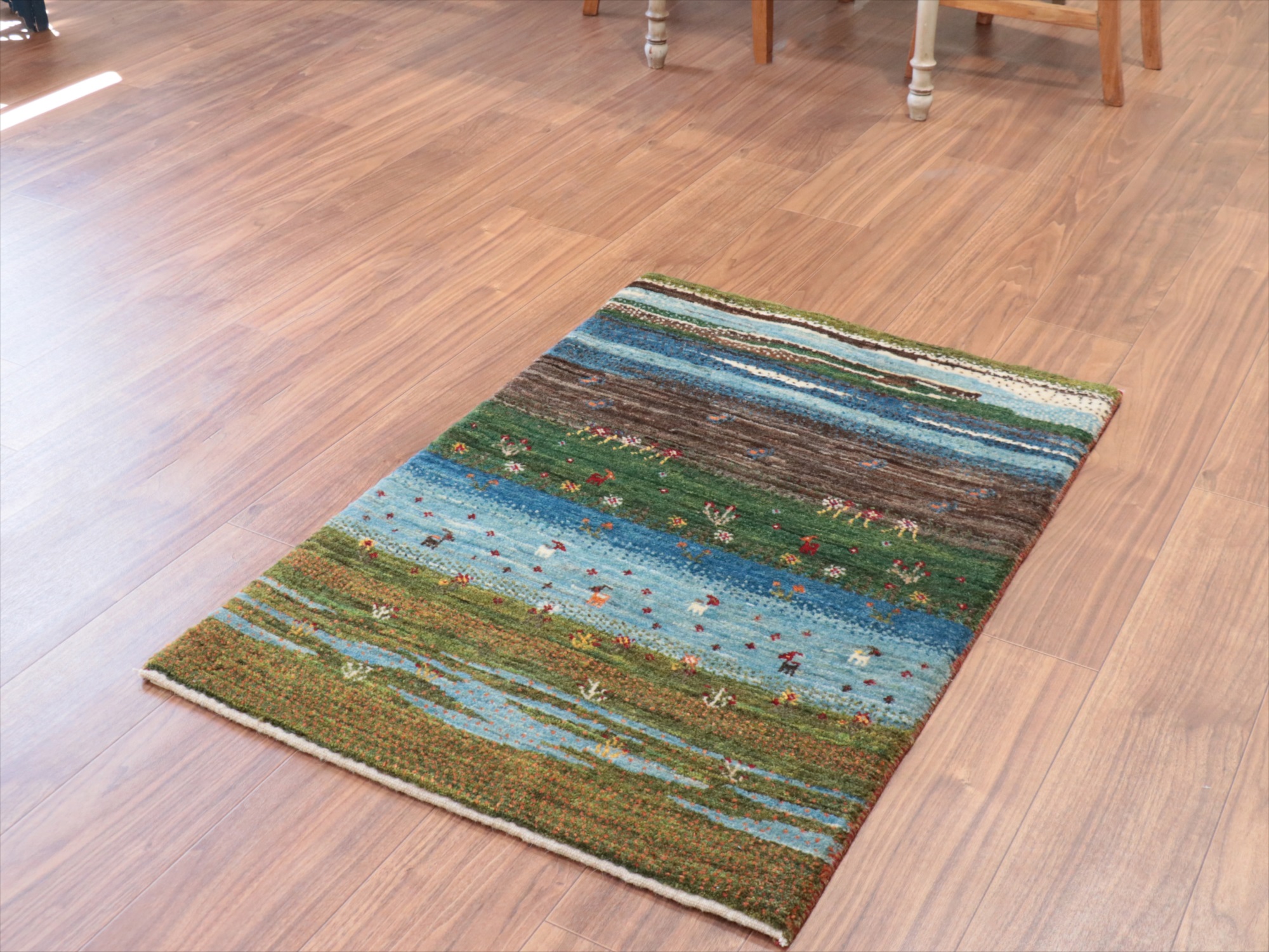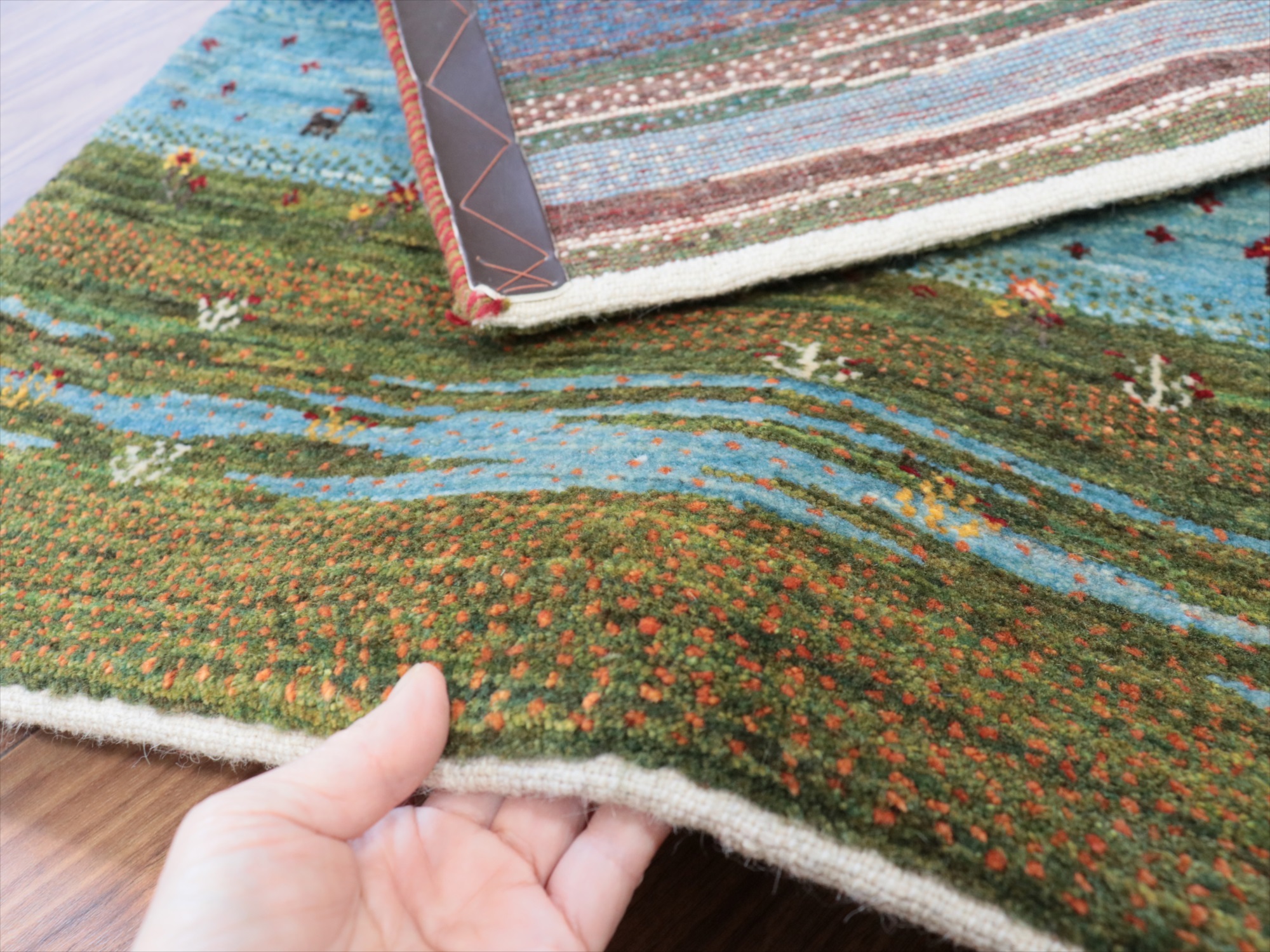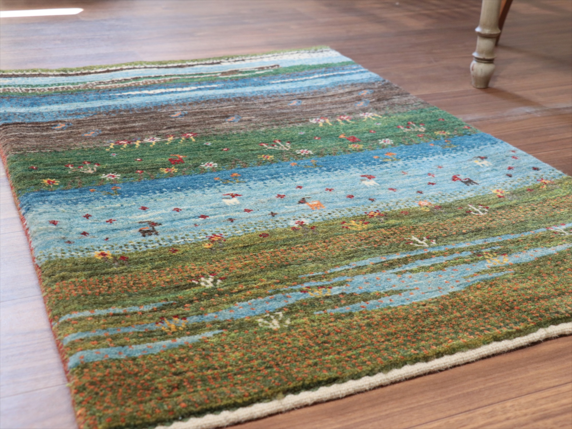 ギャッベ バナフシェ イラン産手織りラグ 101x67cm 広がる草原 風景のギャッベ