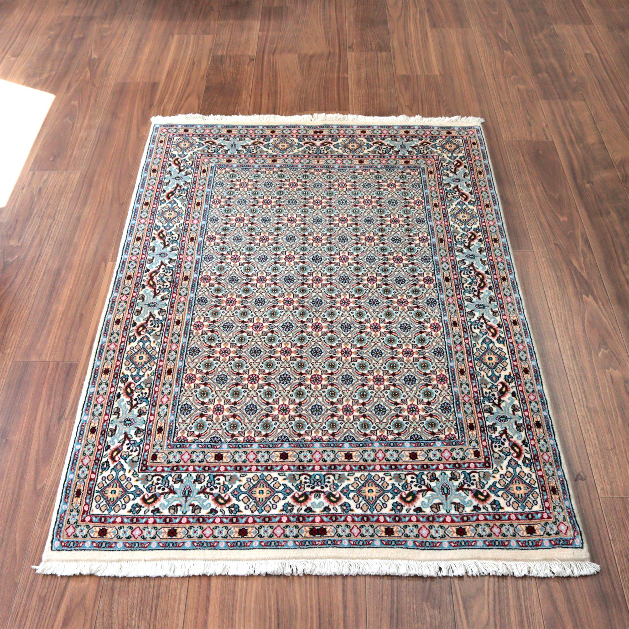 ペルシャ絨毯 ビルジャンド147×99cm 連なる花のデザイン アイボリー 手織りラグ