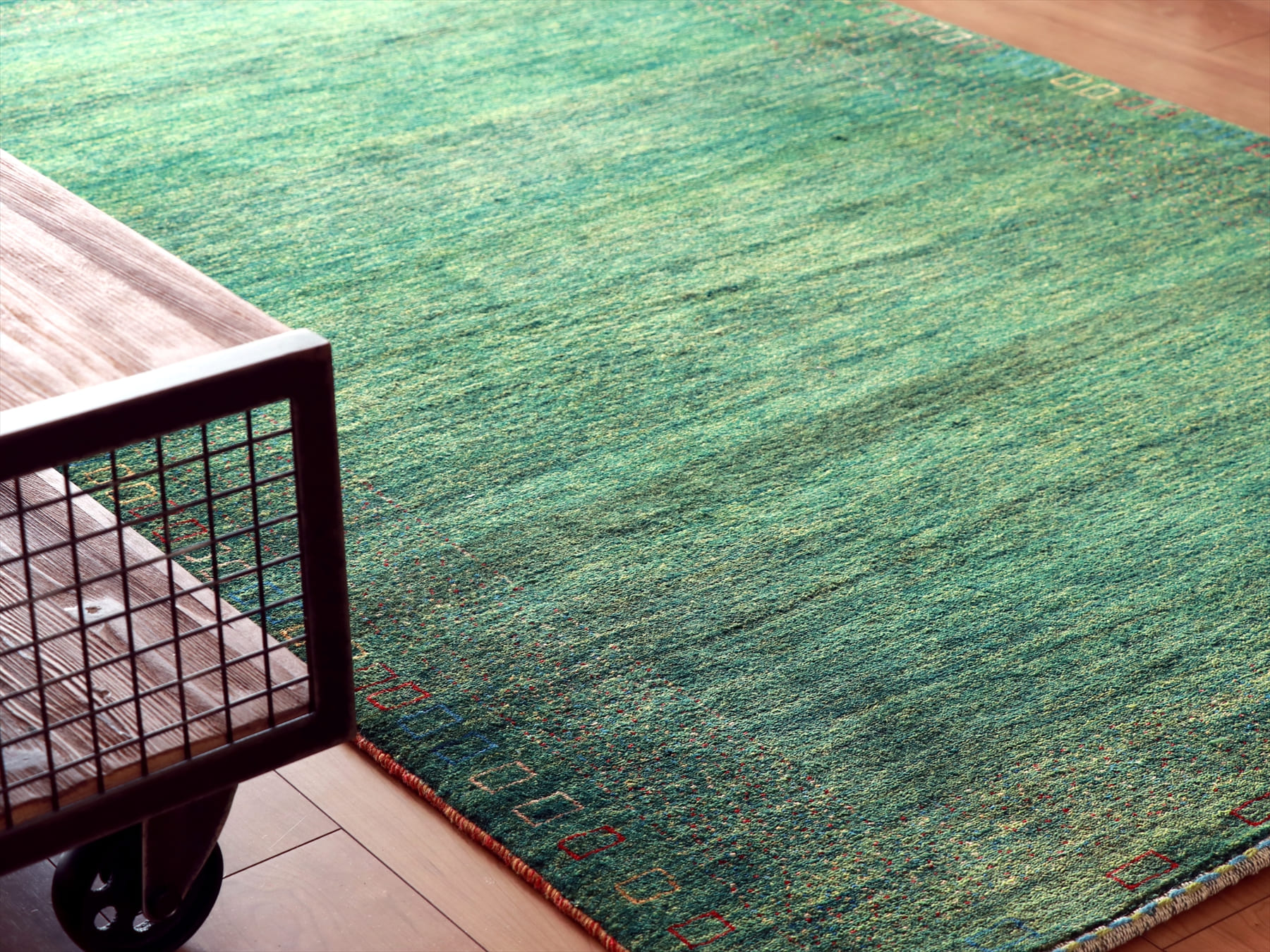 - ギャッベ/カシュクーリ195×123cm 青みのあるグリーン・カラフルドット