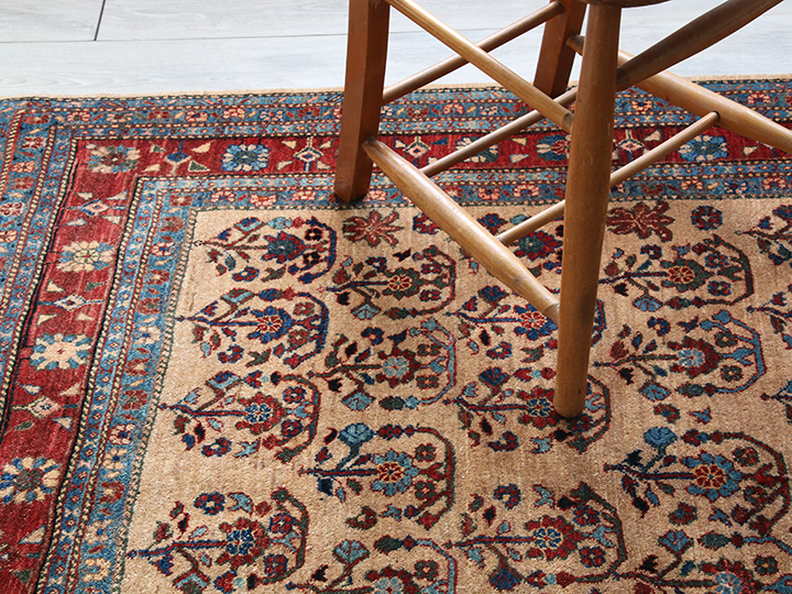 | パイルは短めで、全体の厚みは1cm前後。ギャッベの中ではやや薄手の織り地。細かく目が詰まって、良質な絨毯です。 【Luribaft ルリバフ】 ルリ族の伝統柄をアレンジして、現代風に仕上げたクラシックデザインが特徴。天然染料による染めの美しさ、細かな手織り、そして、何度もブラッシングしてクリーニングとシャーリングを繰り返した手間を惜しまないメンテナンスの技術と、すべての行程において技術の高い手仕事でつくられています。次の世代に受け継いで、永くお使いいただきたい、傑作のそろったコレクションです。 |
