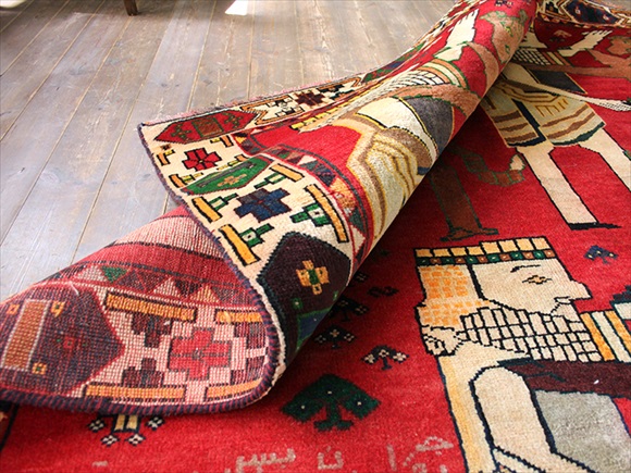 オールドギャッベ(オールドギャベ)・ライオンラグ・リビングサイズ ライオンと戦う王様のデザイン